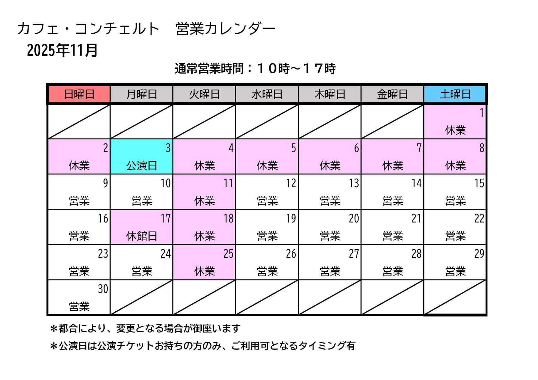 11月カフェ・コンチェルト営業のご案内(11/12追記)