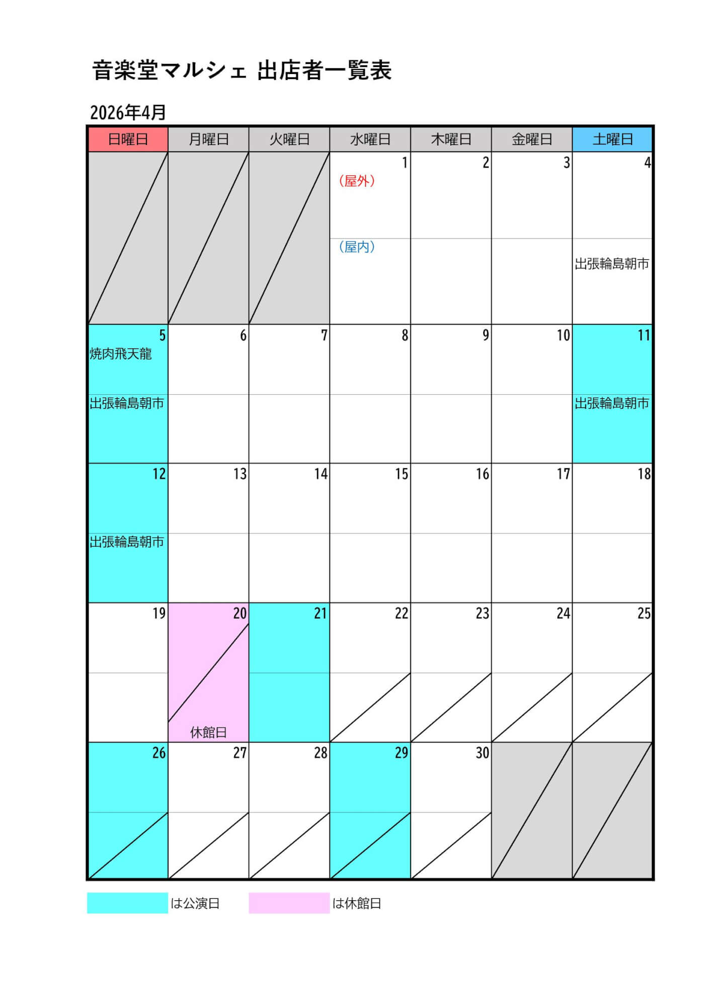 音楽堂マルシェ 4月営業情報