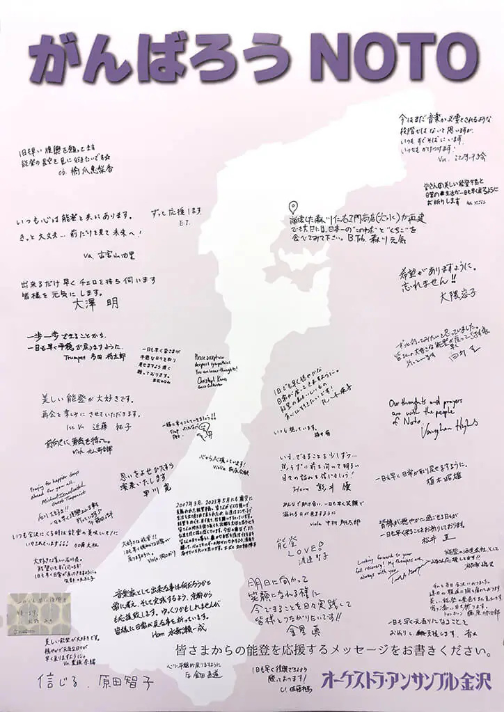 オーケストラ・アンサンブル金沢は多くの方々に感謝と希望と勇気を、演奏を通して届けぬいていく所存です。復興活動の一助として私達の楽団もあり続ける事、楽団員、スタッフ、指揮者陣一同、努めてまいります。